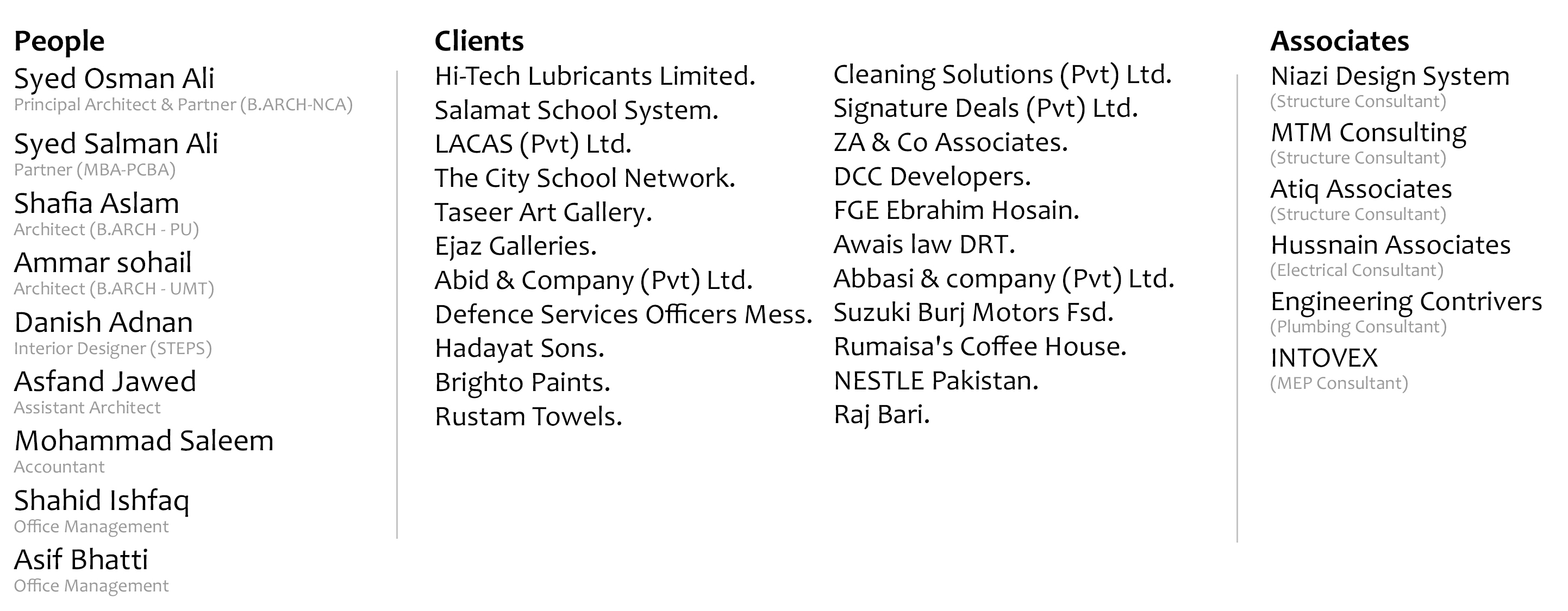 White Spaces specializes in architecture & interior design, project management & construction.Offering design services at all scales and in all sectors, every project is customized according to the client's wish list and considering it as an opportunity to experiment keeping in mind environmental and social sensitivity. From concept till handing over a project, the firm provides highest level of design services and management. To make something new which is the core of every design assignment, learning from nature is very important. At White Spaces, it is believed that great architecture comes from working with great clients. The architecture should reflect contemporary life and a bold statement must be made using the available technology and assigned budget. | ||